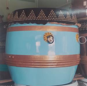 - Trống lân dạng hình tròn, chiều cao khoảng 0,8m, mặt trống khoảng 0,6m, được khép từ miếng ván gỗ rời đã được uốn cong. Da dùng bịt trống là phải da lưng của con trâu già, được người thợ bàu tỉ mỉ trước khi bịt. Màu sơn của trống truyền thống là màu đỏ, nhưng gần đây theo yêu cầu của khách hàng sơn màu vàng, màu xanh hay thổi PU.